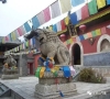 天王殿殿前月臺(tái)上,置一對(duì)石獅,系唐代遺物。其基座為5層須彌座,長1.82米,寬0.95米,高1.04米,中間束腰浮雕飛龍團(tuán)云,上下兩層浮雕蓮花;石獅身長1.6米...